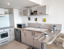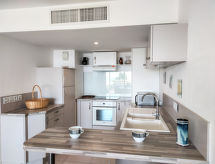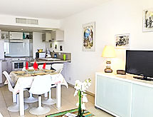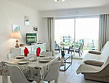 2-rums-lägenhet 50 m2 på 2. våningen. Komfortabelt och vackert inredd: vardags-/matrum med 1 bäddsoffa för 2 personer (140 cm, längd 190 cm), TV och flatscreen TV. Utgång till terrassen. 1 rum med 1 fransk säng (160 cm, längd 200 cm). Utgång till terrassen. Öppet kök (ugn, diskmaskin, 3 Induktionshäll, mikrovågsugn, elektrisk kaffemaskin). Badkar, sep. Toalett. Uppvärmning, luftkonditionering. Stor terrass 15 m2. Terrassmöbler, vilstolar. Utsikt på havet. Till förfogande: strykjärn, hög barnstol, hårtork. Internet (Trådlös LAN [WLAN] , gratis). Garage nr 3, höjd 193 cm, bredd 232 cm. 06088000818HS- Kännetecken för boendet