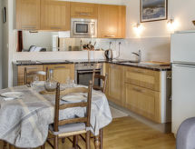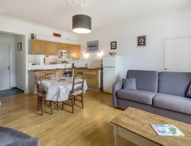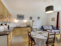 2-rums-lägenhet 42 m2 på 1. våningen, sydläge. Ljus, fullständigt renoverad år 2018, komfortabelt och vackert inredd: vardags-/matrum med 1 bäddsoffa för 2 personer (1 x 140 cm, längd 190 cm), TV (flatscreen TV). 1 rum med 1 fransk säng (1 x 140 cm, längd 190 cm). Öppet kök (ugn, diskmaskin, 4 kokplattor - glaskeramikhäll, mikrovågsugn, frys, elektrisk kaffemaskin). Dusch/toalett. Eluppvärmning. Till förfogande: tvättmaskin, strykjärn, barnsäng. Notera: rökfritt hus. 35288001449E1- Utrustning