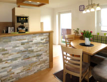 Lantställe 1'000 meter över havsytan, fristående, omgiven av ängar och fält. I ortsdelen Löbbenau 5.5 km från centrumet av Radstadt, 10 km från centrumet av Altenmarkt, soligt läge i en sluttning, i en återvändsgränd. För gemensamt bruk: sittplats, trädgårdsmöbler, utegrill. I huset: cykelförråd, skidförråd, tork för pjäxor. 1.9 km lång gropig tillfart. Parkering på tomten. Stormarknad 4 km, bad med varma källor "Alpentherme Altenmarkt" 10 km. Golfbana (27 hål) 4.5 km, skidlift 4.5 km, kabinlift 4.5 km, skidspår 5 km. Notera: ägaren bor i samma hus.Interior