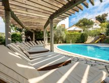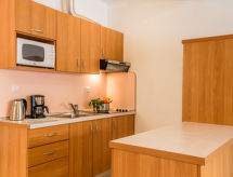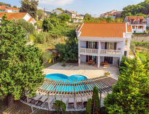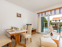 "Tomislav 1", 2-rums-lägenhet 48 m2, på bottenvåningen. Modernt och mysigt inredd: vardags-/matrum 30 m2 med 1 bäddsoffa för 2 personer, sat-TV och luftkonditionering. Utgång till terrassen, till swimmingpoolen. 1 rum med 1 dubbelsäng (160 cm, längd 200 cm). Utgång till terrassen. Öppet kök (4 kokplattor, mikrovågsugn, frys). Dusch/toalett. Terrass 12 m2, täckt. Terrassmöbler. Utsikt på swimming-poolen. Till förfogande: kassaskåp. Internet (Trådlös LAN [WLAN] , gratis). Parkeringsplats.- Utrustning