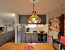 Enfamiljshus "Toni", med 2 våningar. I den lilla byn Butkovići 7 km från centrumet av Vodnjan, 12 km från havet. För privat bruk: tomt 500 m2 (inhägnad), gräsmatta och träd, pool kantig (5 x 4 m, 130 cm djup, tillgång säsongsbunden: 06.Maj. - 07.Okt.). Utedusch, terrass (20 m2), trädgårdsmöbler, utegrill. I huset: internetanslutning, tvättmaskin. Parkering (för 2 bilar) på tomten. Affär 1.5 km, grusstrand 20 km, strand vid klippor 12 km. Delar av huset är stängda och obebodda.Interior