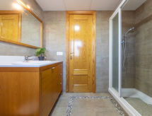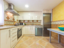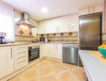 "Torre del Sol", 7-rums-hus 126 m2. Objekt passande för 6 vuxna + 2 barn. Praktiskt och mysigt inrett: vardags-/matrum med TV, luftkonditionering och varmluftsuppvärmning. 1 rum med 1 säng (80 cm, längd 190 cm). Salong. Kök (ugn, diskmaskin, 3 kokplattor - glaskeramikhäll, brödrost, vattenkokare, mikrovågsugn, elektrisk kaffemaskin). Dusch/toalett. Övre våning: 1 rum med 1 fransk säng (160 cm, längd 200 cm). 1 rum med 1 fransk säng (150 cm, längd 190 cm). 1 rum med 2 sängar (90 cm, längd 190 cm). 1 rum med 1 säng (90 cm, längd 190 cm). Genomgångsrum. Dusch/bidé/toalett. Luftkonditionering, varmluftsuppvärmning. Balkong. Terrassmöbler, utegrill, vilstolar (4). Utsikt på swimming-poolen och trädgården. Till förfogande: tvättmaskin, strykjärn, hög barnstol, barnsäng för barn under 2 år, hårtork. Internet (Trådlös LAN [WLAN] , gratis). Parkeringsplats (2 Bilar) vid huset. Notera: lämpligt för barnfamiljer. Rökfritt hus. 1 litet husdjur/hund tillåtet. TV bara ES. HUTT060583- Utrustning