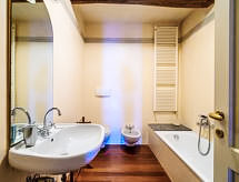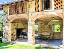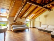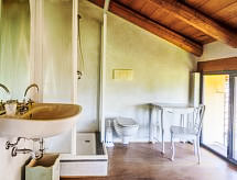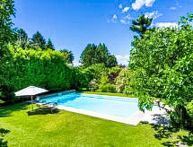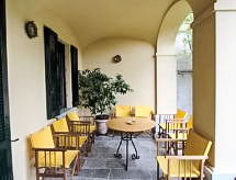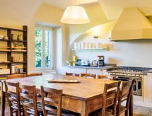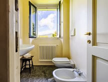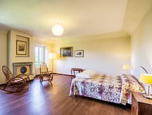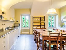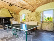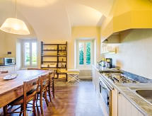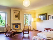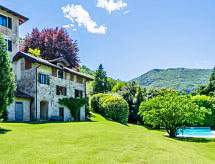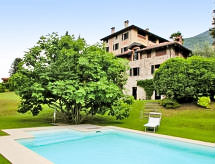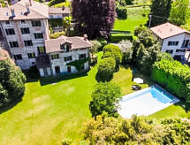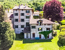 Gammal, stor villa "Torre", från 1800-talet. 2 km från centrumet av Porto Valtravaglia, lugnt, upphöjt läge, område med lite trafik, 2.2 km från sjön. För privat bruk: trädgård 2'500 m2 (inhägnad) med gräsmatta och träd, pool (12 x 6 m, 80 - 200 cm djup, tillgång säsongsbunden: 15.Maj. - 15.Sep.). Dusch/toalett i poolområdet, bordtennis, sittplats, utegrill. I huset: hiss. Parkering (för 3 bilar) på tomten, allmän parkering 50 m. Stormarknad 2 km, restaurang, bar 500 m, järnvägsstation "Porto Valtravaglia" 2 km, grusstrand 2.2 km. Närbelägna sevärdheter: Luino 8 km, Laveno 10 km. Notera: fordon rekommenderas, hiss endast till 3. våningen. Ägaren accepterar inga ungdomsgrupper. Delar av huset är stängda och obebodda.Interior