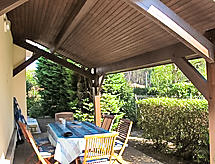 4-rums-hus 115 m2 med 2 våningar. Vackert och rustikt inrett: vardagsrum med 1 bäddsoffa, sat-TV och internationella TV-kanaler (flatscreen TV). Matrum med stereoanläggning. Utgång till terrassen. Kök (ugn, diskmaskin, 3 kokplattor - glaskeramikhäll, mikrovågsugn). Sep. Toalett. Övre våning: 1 rum med 1 fransk säng (160 cm). 1 rum med 2 sängar. Dusch/toalett. Oljeuppvärmning. Terrass täckt, sydläge terrass, österläge. Terrassmöbler, vilstolar (4). Till förfogande: tvättmaskin. Internet (Trådlös LAN [WLAN] , extra). Notera: brandvarnare.- Utrustning