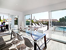 "Trebol", 6-rums-hus 200 m2. Rymlig, renoverat år 2016, vackert och modernt inrett: öppet stort vardags-/matrum med öppen spis, sat-TV, digital-TV och eluppvärmning. Utgång till terrassen, till swimmingpoolen. 1 rum med 1 fransk säng, sat-TV, digital-TV, luftkonditionering och varmluftsuppvärmning. Utgång till terrassen. 1 rum med 1 fransk säng, sat-TV, digital-TV, luftkonditionering och varmluftsuppvärmning. 1 barnrum med 1 utdragbar säng (2 pers.). 1 rum med klädkammare med 1 fransk säng, sat-TV, digital-TV, luftkonditionering och varmluftsuppvärmning. 1 barnrum med 1 skåpsäng och 1 utdragbar säng (2 pers.), sat-TV, digital-TV, luftkonditionering och varmluftsuppvärmning. Kök (5 kokplattor, ugn, diskmaskin, mikrovågsugn, elektrisk kaffemaskin). 2 duschar/toaletter. Terrassmöbler, utegrill, vilstolar. Till förfogande: tvättmaskin, strykjärn, hög barnstol, barnsäng för barn under 2 år, hårtork. Internet (Trådlös LAN [WLAN] , gratis). Parkeringsplats. Lämpligt för barnfamiljer. AT-450669-A- Utrustning