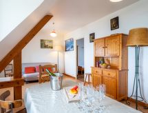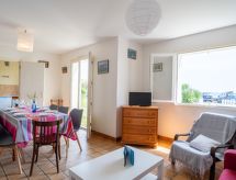 Villa "Trezen". I utkanten, 2.5 km från centrumet, 30 m från havet, gata att korsa. För privat bruk: tomt 200 m2. Trädgårdsmöbler, parkering på tomten, allmän parkering. Affär 2.5 km, livsmedelsaffär 2.5 km, stormarknad 2.5 km, restaurang 2.5 km, sandstrand "Légenèse" 30 m. Golfbana (18 hål) 15 km, seglarskola 2 km, ridstall 7 km. Närbelägna sevärdheter: Alignement de Carnac 6 km, Presqu'Ile de Quiberon 15 km, Vannes 30 km, Ile de Groix, Ile aux Moines.Interior
