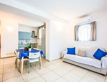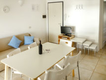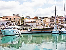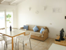 "Trilocale", 3-rums-lägenhet 65 m2. Komfortabelt inredd: vardagsrum med 1 bäddsoffa för 2 personer och digital-TV. 1 dubbelrum med 1 dubbelsäng och 1 sovmöjliget. 1 litet rum med 2 sängar. Kokvrå (4 gasflammor). Dusch/bidé/toalett. Luftkonditionering. Utsikt på hamnen. Till förfogande: hårtork. Internet (Trådlös LAN [WLAN] , gratis). Lämpligt för barnfamiljer. 1 husdjur/hund tillåtet. Hyresobjektet är en boendetyp.- Utrustning