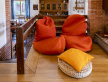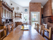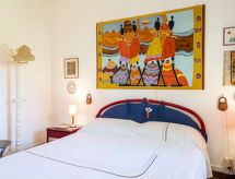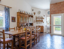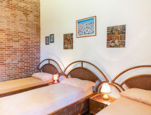 "Trireme", 5-rums-hus 175 m2 med 2 våningar. Praktiskt inrett: vardagsrum med öppen spis (endast för dekoration), matbord och TV. Utgång till terrassen. 1 rum med 1 dubbelsäng och dusch/toalett. 1 rum med 3 sängar. Kök (ugn, diskmaskin, 4 gasflammor, vattenkokare, mikrovågsugn, frys, elektrisk kaffemaskin). Utgång till terrassen. Dusch/toalett. Nedre våning: 1 rum med 1 dubbelsäng. 1 rum med 1 säng och 1 dubbelsäng. Dusch/toalett. Ingen uppvärmningsmöjlighet. 2 terrasser, trädgård. Terrassmöbler, utegrill (flyttbar). Till förfogande: tvättmaskin. Internet (Trådlös LAN [WLAN] , gratis). Parkeringsplats (1 Bil). Notera: rökfritt hus.- Utrustning