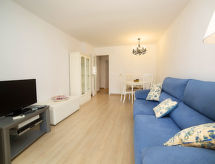 "Turmalina", 3-rums-lägenhet på 2. våningen. Fullständigt renoverad, vackert och smakfullt inredd: vardags-/matrum med sat-TV, digital-TV, luftkonditionering och varmluftsuppvärmning. Utgång till terrassen. 1 rum med 1 fransk säng, luftkonditionering och varmluftsuppvärmning. 1 rum med 2 sängar. (ugn, diskmaskin, 4 kokplattor - glaskeramikhäll, mikrovågsugn). Utgång till balkongen. Dusch/toalett. Sidoutsikt utsikt på havet. Till förfogande: tvättmaskin, strykjärn, hårtork. AT-474569-A- Utrustning