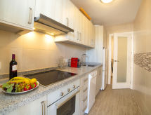 Calpe: Barnvänligt, vackert flerfamiljshus "Turmalina". I orten, 2 km, livligt läge, direkt vid havet, direkt vid stranden, direkt tillgång till stranden, i en återvändsgränd, mot sydost. För gemensamt bruk: tomt (inhägnad), 3 pooler (tillgång säsongsbunden: 01.Jan. - 31.Dec.). Oregelbundet formad pool. Barnbassäng, utedusch, tennis (extra). I huset: reception, Trådlös LAN [WLAN], hiss, tvättmaskin. Allmänt parkeringshus på 20 m avstånd. Affär 50 m, stormarknad 250 m, restaurang, bar 20 m, internetcafé, område endast för gående 50 m, busshållplats "Autobus Local" 20 m, järnvägsstation 5.1 km, sandstrand "Playa de la Fosssa" 20 m. Sporthamn, marina 500 m, golfbana (9 hål) 10 km, surfskola 600 m, seglarskola 500 m, tennis 20 m, ridstall 3.7 km, sportcentrum 2.8 km, vandringsleder från huset 600 m. Närbelägna sevärdheter: Aqualandia, Mundomar, Terra Mítica, Terra Natura, Benidorm Palace (Benidorm), Guadalest 33.8 km, Fuentes del Algar 24.6 km. Vandringsområden Parque Natural Peñón de Ifach. 2.5 km, Paseo ecológico Calpe - Benissa 2.5 km, Sierra de Olta 7.6 km. Notera: Öppettider reception klockan 08:00-24:00. Notera: nattbevakning på området.Interior