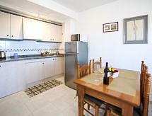 "Turquesa Beach 05", 2-rums-lägenhet 37 m2 på 5. våningen. Objekt passande för 2 vuxna + 2 barn. Praktiskt och komfortabelt inredd: öppet vardags-/matrum med 1 bäddsoffa, digital-TV, luftkonditionering och varmluftsuppvärmning. Utgång till terrassen. 1 rum med 2 sängar, luftkonditionering och varmluftsuppvärmning. Öppet kök (3 kokplattor, mikrovågsugn). Badkar/toalett. Luftkonditionering, varmluftsuppvärmning. Terrass 12 m2. Vacker utsikt på havet och hamnen. Till förfogande: tvättmaskin. Internet (Trådlös LAN [WLAN] , gratis). Parkeringsplats nr 32. AT-465052-A- Utrustning
