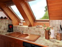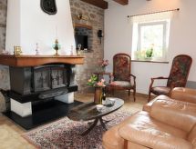 "Ty Coz (GUI113)", 2-rums-hus 75 m2 med 2 våningar. Rustikt och mysigt inrett: vardags-/matrum med öppen spis, matbord och sat-TV. 1 rum med 1 fransk säng (140 cm, längd 190 cm). Öppet kök (ugn, diskmaskin, 4 gasflammor, brödrost, vattenkokare, mikrovågsugn, elektrisk kaffemaskin). Dusch/toalett. Eluppvärmning. Övre våning: öppet galleri med snedtak med 1 fransk säng (140 cm, längd 190 cm). Parkettgolv. Terrass, sydläge. Terrassmöbler, utegrill, vilstolar (4). Till förfogande: tvättmaskin, strykjärn. Notera: rökfritt hus. Max 1 husdjur/hund tillåtet. Brandvarnare.- Utrustning
