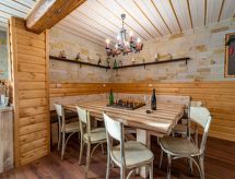 8-rums-chalet med 2 våningar. Mycket vackert och luxuöst inrett: 2 rum, till varje rum hör, 2 x 2 våningssängar, 1 dubbelsäng, dusch/toalett och TV. Lekrum. Kombinerat kök och vardagsrum (diskmaskin, 4 kokplattor - glaskeramikhäll, vattenkokare, mikrovågsugn) med matbord och TV. Bastu. Övre våning: 3 rum, till varje rum hör 4 sängar, matbord, köksblock, dusch/toalett och TV. Stort vardagsrum med TV. Stor trädgård. Utegrill, sittgrupp. Vacker utsikt på landskapet. Till förfogande: hög barnstol, barnsäng. Internet (Trådlös LAN [WLAN] , gratis). Notera: rökfritt hus. Beer tap available.- Utrustning