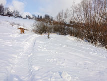 4-rums-lägenhet på bottenvåningen. Mycket vackert och luxuöst inredd: 2 rum, till varje rum hör, 2 x 2 våningssängar, 1 dubbelsäng, dusch/toalett och TV. Lekrum. Kombinerat kök och vardagsrum (diskmaskin, 4 kokplattor - glaskeramikhäll, vattenkokare, mikrovågsugn) med matbord och TV. Stor trädgård. Utegrill, sittgrupp. Vacker utsikt på landskapet. Till förfogande: hög barnstol, barnsäng. Internet (Trådlös LAN [WLAN] , gratis). Notera: rökfritt hus. Beer tap available.- Utrustning