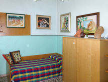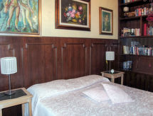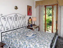 7-rums-hus 265 m2 med 2 våningar, på bottenvåningen över marknivå. Enkelt och antikt inrett: vardagsrum med sat-TV. Utgång till balkongen. 1 rum med 2 sängar (80 cm). 1 rum med 1 fransk säng (160 cm). 1 dubbelrum. Stort kök (ugn, diskmaskin, 4 gasflammor, brödrost, frys, elektrisk kaffemaskin) med matbord, sat-TV. Dusch/bidé/toalett. Övre våning: 1 rum med 1 fransk säng (160 cm). 1 dubbelrum. Utgång till balkongen. Matrum med matbord. Utgång till trädgården. Vardagsrum med sat-TV. Kök (ugn, diskmaskin, 4 gasflammor, frys, elektrisk kaffemaskin). 2 badkar/bidéer/toaletter. Gasuppvärmning. Heltäckningsmatta. 2 små balkonger, trädgårdssittplats. Terrassmöbler, utegrill (flyttbar), vilstolar (4). Till förfogande: tvättmaskin, strykjärn, hög barnstol. Notera: rökfri lägenhet.- Kännetecken för boendet