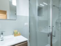 "Trilocale", 3-rums-lägenhet 70 m2, på bottenvåningen över marknivå. Ljus, mysigt inredd: öppet vardags-/matrum med 1 bäddsoffa för 2 personer och TV (flatscreen TV). 1 dubbelrum med dusch/bidé/toalett. 1 dubbelrum. Liten kokvrå (4 kokplattor, ugn, mikrovågsugn, frys). Badkar/bidé/toalett. Uppvärmning, luftkonditionering. Till förfogande: tvättmaskin, torktumlare, barnsäng, hårtork. Internet (Trådlös LAN [WLAN] , gratis). Notera: ingen parkeringsplats. Ingen hiss. LE07505291000013904- Kännetecken för boendet