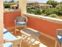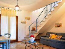 "Vecchio Stazzo - Trilo 6DS", 3-rums-lägenhet 45 till 60 m2 med 2 våningar. Vackert inredd: vardags-/sovrum med 1 bäddsoffa för 2 personer, matbord och TV. Utgång till terrassen. Litet, öppet kök (4 gasflammor, vattenkokare, mikrovågsugn). Dusch/toalett. Övre våning: 1 rum med 1 dubbelsäng. Utgång till balkongen. 1 rum med 2 sängar. Dusch/toalett. Eluppvärmning, luftkonditionering. Balkong, terrass. Terrassmöbler. Till förfogande: tvättmaskin, barnsäng. Internet (Trådlös LAN [WLAN] , gratis).- Utrustning