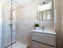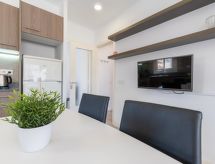 3-rums-lägenhet 62 m2. Rymlig och ljus, fullständigt renoverad, komfortabelt och modernt inredd: vardags-/matrum med sat-TV, luftkonditionering och varmluftsuppvärmning. Utgång till terrassen. 1 rum med 1 fransk säng (150 cm, längd 190 cm). 1 rum med 1 fransk säng (135 cm, längd 190 cm). Kök (ugn, diskmaskin, 3 Induktionshäll, brödrost, vattenkokare, mikrovågsugn, frys, elektrisk kaffemaskin). Dusch/toalett. Terrass 7 m2. Terrassmöbler. Till förfogande: tvättmaskin, strykjärn, hårtork. Internet (Trådlös LAN [WLAN] , gratis). Notera: rökfri lägenhet. TV bara FR. Ingen hiss. HUTG051139- Utrustning
