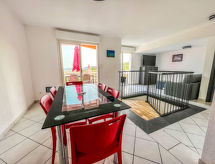 Vackert, komfortabelt residens "Via Mare", med 2 våningar. 40 lägenheter i residenset. 8 km från centrumet av Porto Vecchio, 34 km från centrumet av Bonifacio, 143 km från centrumet av Bastia, soligt, upphöjt läge i en sluttning, 3 km från havet, i det gröna. För gemensamt bruk: tomt i naturtillstånd 5 ha (inhägnad) med planteringar och träd, naturtomt, pool inhägnad (15 x 8 m, tillgång säsongsbunden: 16.Apr. - 15.Okt.). Utedusch, boccia, terrass. I anläggningen: reception, bar, Trådlös LAN [WLAN], gym, bubbelbad, hamam, tvättmaskin (för gemensamt bruk, extra). Byte av sängkläder (i tillägg). Byte av handdukar i tillägg. Städning 1 gånger i veckan möjligt (extra). Brödservice möjligt på förfrågan. Parkering på tomten. Affär 2.5 km, stormarknad 8 km, bar 3 km, sandstrand "St. Cyprien & Pinarellu" 3 km. Notera: fordon rekommenderas. Residens med elektriska grindar. Bilden är bara ett exempel på ett hus. Hyresobjekten kann variera i boyta, planlösning, utrustning och möblering.Interior