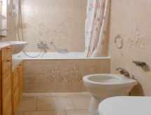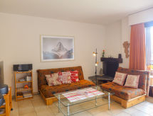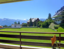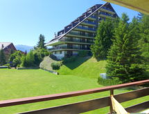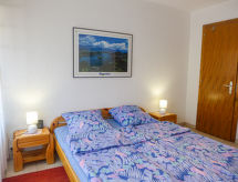 3-rums-lägenhet 70 m2 på 2. våningen. Vackert inredd: vardags-/matrum med kabel-TV. Utgång till balkongen, mot söder. 1 rum, mot norr med 1 fransk säng (160 cm, längd 200 cm), badkar/bidé/toalett. Utgång till balkongen, mot norr. 1 rum med 1 x 2 våningssängar (90 cm, längd 200 cm). Utgång till balkongen, mot norr. Öppet kök (ugn, diskmaskin, 4 kokplattor - glaskeramikhäll, brödrost, vattenkokare, mikrovågsugn, frys, elektrisk kaffemaskin, Kapslar till kaffemaskin (Nespressso) extra, raclettegrill, fondueset (ost )). Dusch/toalett. Balkongmöbler. Vacker utsikt på bergen. Till förfogande: strykjärn, hårtork. Internet (Trådlös LAN [WLAN] , gratis). Garage nr B23, höjd 200 cm, bredd 210 cm. Notera: rökfri lägenhet.- Kännetecken för boendet