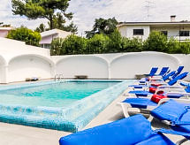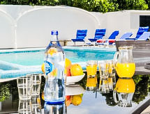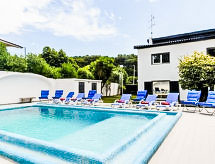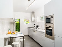 "Vila Violeta", 6-rums-villa 200 m2. Komfortabelt och mysigt inredd: vardags-/matrum med öppen spis och kabel-TV (flatscreen TV). Utgång till trädgårdssittplatsen, till swimmingpoolen. 1 rum med 1 fransk säng och dusch/toalett. Kök (ugn, diskmaskin, 4 kokplattor - glaskeramikhäll, mikrovågsugn, elektrisk kaffemaskin) med matbord. Sep. Toalett. Övre våning: 1 rum med 1 fransk säng och bubbelbad. 2 rum, till varje rum hör, 1 fransk säng och dusch/toalett. 1 rum med 1 säng och 1 x 2 våningssängar. Terrass. Terrassmöbler, utegrill, vilstolar (6). Utsikt på swimming-poolen. Till förfogande: tvättmaskin, barnsäng för barn under 3 år, hårtork. Internet (Trådlös LAN [WLAN] , gratis). 56675/AL- Utrustning