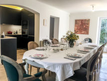 4-rums-hus 120 m2. Renoverat år 2019, komfortabelt och vackert inrett: salong med panoramafönster med TV (flatscreen TV). Utgång till terrassen, till swimmingpoolen. Matrum med panoramafönster. Utgång till terrassen, mot norr och mot söder. 1 rum med 1 säng (90 cm, längd 200 cm), 1 fransk säng (160 cm, längd 200 cm). 1 rum med 1 fransk säng (1 x 160 cm, längd 200 cm). Öppet kök (ugn, diskmaskin, 4 kokplattor - glaskeramikhäll, brödrost, vattenkokare, mikrovågsugn, elektrisk kaffemaskin, Kapslar till kaffemaskin (Nespresso) extra). Utgång till terrassen. 2 duschar, 2 separata toaletter. Luftkonditionering. Terrass 20 m2, sydläge terrass 10 m2, norrläge, stor trädgård 900 m2. Terrassmöbler, vilstolar (3). Utsikt på swimming-poolen och trädgården. Till förfogande: tvättmaskin, torktumlare, strykjärn, barnsäng för barn under 2 år, hårtork. Internet (Trådlös LAN [WLAN] , gratis). Parkeringsplats. Notera: brandvarnare. 83048000318WX- Utrustning