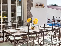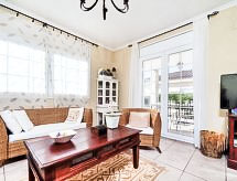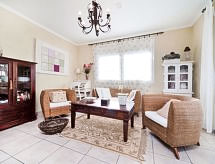 "Villa Capri", 4-rums-villa 100 m2. Rymlig och ljus, komfortabelt och mysigt inredd: vardags-/matrum 30 m2 med matbord, sat-TV, digital-TV och flatscreen TV. Utgång till terrassen. 1 rum med 2 sängar (90 cm). 2 rum, till varje rum hör, 1 fransk säng (150 cm). Kök (ugn, diskmaskin, 4 kokplattor - glaskeramikhäll, brödrost, vattenkokare, mikrovågsugn, frys, elektrisk kaffemaskin). Dusch/bidé/toalett, sep. Toalett. Luftkonditionering. Ingen uppvärmningsmöjlighet. Terrass, 30 m2. Terrassmöbler, utegrill. Till förfogande: tvättmaskin, strykjärn, hårtork. Internet (Trådlös LAN [WLAN] , gratis). Parkeringsplats. Notera: TV bara ES, DE, FR. HUTT001582- Utrustning