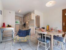 4-rums-radhus 65 m2 med 2 våningar. Mycket praktiskt inrett: vardags-/matrum med TV (flatscreen TV), fläkt. Utgång till terrassen. 1 rum med 1 fransk säng (140 cm, längd 190 cm), fläkt. Kokvrå (ugn, diskmaskin, 4 Induktionshäll, brödrost, vattenkokare, elektrisk kaffemaskin). Sep. Toalett. Övre våning: 1 rum med 1 x 2 våningssängar (90 cm, längd 190 cm), fläkt. 1 rum med 1 bäddsoffa (140 cm, längd 190 cm), fläkt. Dusch/toalett, sep. Toalett. Stor terrass 20 m2. Terrassmöbler, utegrill. Till förfogande: tvättmaskin. Internet (Trådlös LAN [WLAN] , gratis). Parkeringsplats. Notera: brandvarnare.- Utrustning