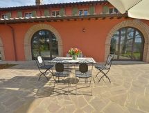 Mycket vackert, komfortabelt residens "Cignella Resort", omgiven av träd, fält och vingårdar. 13 lägenheter i residenset. 3 km från centrumet av Trequanda, avskilt, soligt, upphöjt läge, i det gröna. För gemensamt bruk: tomt (inhägnad), stor trädgård planteringar och träd, pool inhägnad (10 x 12 m, tillgång säsongsbunden: 01.Maj. - 15.Okt. poolen är öppen under följande tider: mellan kl 08:00-19:00) med innertrappor. Barnbassäng, utedusch, sittplats, pergola, terrass, trädgårdsmöbler, utegrill. I huset: reception, frukostrum, sällskapsrum, massage (extra). Byte av sängkläder 1 gånger i veckan. Byte av handdukar 1 gånger i veckan. Städning möjligt (extra). Frukost möjligt (extra). Flygplatstransfer (extra). 1 km lång gropig tillfart. Parkering på tomten. Affär 3 km, livsmedelsaffär 3 km, stormarknad 10 km, köpcentrum 10 km, restaurang 3.5 km, busshållplats 1.5 km, järnvägsstation "Foiano della Chiana" 22 km, bad med varma källor "Rapolano Terme" 30 km, badsjö "Trasimeno" 30 km. Golfbana (9 hål) 17 km. Närbelägna sevärdheter: Pienza 13 km, Montepulciano 14 km, Montalcino 32 km, Cortona 39 km, Arezzo 48 km, Siena 49 km. Välkända sjöar nås enkelt: Trasimeno 30 km, Chiusi 35 km. Notera: Öppettider reception klockan 09:00-18:00. Lämplig för barnfamiljer, babyutrustning (inkl.), barnvakt (extra). Passande för event. På förfrågan: flygplatstransfer till semesterobjektet. Notera: Av- och pålastning av bagage är möjligt vid semesterbostaden. 24-timmars övervakning. Residens med elektriska grindar. Alla hus/lägenheter är individuellt inredda.Interior