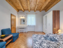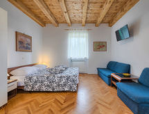 Enfamiljshus "Villa Crispo (MDN119)". I ortsdelen Burle 1 km från centrumet av Medulin, 12 km från centrumet av Pula, i ett bostadsområde, 50 m från havet, 1 km från stranden. För privat bruk: tomt 2'000 m2 (inhägnad), planteringar och träd, pool (7 x 4 m, 29 m2, 140 cm djup, tillgång säsongsbunden: 16.Maj. - 07.Nov.) med innertrappor. Utedusch, terrass (100 m2), trädgårdsmöbler, utegrill. I huset: internetanslutning, tvättmaskin. Parkering (för 2 bilar) på tomten. Affär 150 m, sandstrand 1 km. Marina 1.5 km. Notera: flygplats 14 km från huset.Interior
