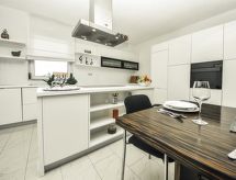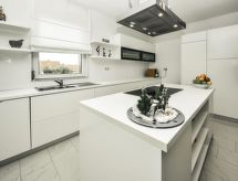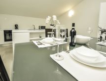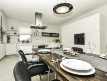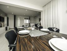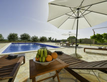 7-rums-hus 222 m2 med 2 våningar. Vardags-/matrum 55 m2 med sat-TV (flatscreen TV), luftkonditionering. Utgång till terrassen. 2 rum, till varje rum hör, 1 fransk säng (180 cm, längd 200 cm), luftkonditionering. Öppet kök (ugn, diskmaskin, 4 kokplattor - glaskeramikhäll, frys, elektrisk kaffemaskin). Badkar/dusch/toalett. Takvåning: 1 rum med snedtak, takhöjd 100 - 300 cm med 1 fransk säng (180 cm, längd 200 cm), luftkonditionering. 1 rum med snedtak, takhöjd 100 - 300 cm med 1 fransk säng (180 cm, längd 200 cm), luftkonditionering. Utgång till terrassen. 1 rum med snedtak, takhöjd 100 - 300 cm med 2 sängar (90 cm, längd 200 cm), luftkonditionering. 1 rum med snedtak, takhöjd 100 - 300 cm med 2 sängar (90 cm, längd 200 cm). Matrum 24 m2, med snedtak, takhöjd 100 - 300 cm. Matrum med snedtak, takhöjd 100 - 300 cm med köksblock. Med snedtak, öppet kök (ugn, diskmaskin, 4 kokplattor - glaskeramikhäll) med luftkonditionering. 2 duschar/toaletter. Terrass 15 m2, täckt, terrass 10 m2, täckt. Terrassmöbler, vilstolar. Utsikt på swimming-poolen och landskapet. Till förfogande: kassaskåp, barnsäng, hårtork. Internet (Trådlös LAN [WLAN] , gratis). 1 husdjur/hund tillåtet.- Utrustning