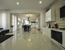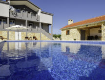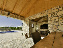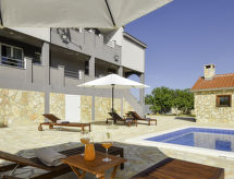 Suhovare 18 km från Zadar: Enfamiljshus "Villa Dalmacija", med 2 våningar. Lugnt, soligt, upphöjt läge, 12 km från havet. För privat bruk: tomt 2'000 m2 (inhägnad), pool kantig (10 x 5 m, 150 cm djup, tillgång säsongsbunden: 01.Apr. - 01.Okt.) med innertrappor. Trädgårdsmöbler, grillstuga. I huset: internetanslutning, tvättmaskin. Affär 500 m, restaurang 1.2 km, grusstrand 12 km. Notera: flygplats 10 km från huset. Bottenvåningen är avstängd och används inte.Interior