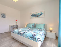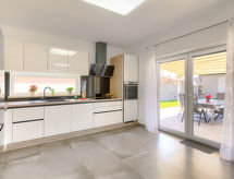 5-rums-ena hälften av ett parhus 170 m2 med 2 våningar. Vackert och modernt inredd: vardags-/matrum med sat-TV och luftkonditionering. Utgång till terrassen, till swimmingpoolen. Öppet kök (ugn, diskmaskin, 4 Induktionshäll, brödrost, vattenkokare, mikrovågsugn, frys, elektrisk kaffemaskin). Utgång till terrassen, till swimmingpoolen. Sep. Toalett. Övre våning: (spiraltrappa) 2 rum, till varje rum hör, 1 fransk säng (180 cm, längd 200 cm), dusch/toalett, sat-TV och luftkonditionering. 2 rum, till varje rum hör 1 säng (80 cm, längd 200 cm), 1 fransk säng (180 cm, längd 200 cm), dusch/toalett, sat-TV och luftkonditionering. Terrass 24 m2. Terrassmöbler, utegrill (flyttbar), vilstolar. Utsikt på swimming-poolen. Till förfogande: kassaskåp, strykjärn, myggnät, hög barnstol, barnsäng, hårtork. Internet (Trådlös LAN [WLAN] , gratis). Garage (2 Bilar). Notera: rökfritt hus.- Utrustning