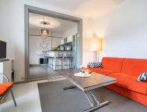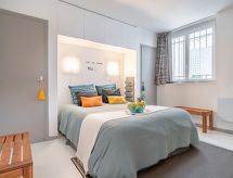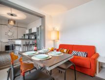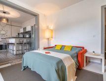2-rums-lägenhet 50 m2, på bottenvåningen. Objekt passande för 2 vuxna + 1 barn. Komfortabelt och vackert inredd: vardags-/matrum med 1 bäddsoffa (140 cm, längd 190 cm), TV (flatscreen TV). 1 rum med 1 fransk säng (140 cm, längd 190 cm), dusch/toalett. Öppet kök (2 kokplattor - glaskeramikhäll, brödrost, vattenkokare, elektrisk kaffemaskin, kombinerad mikrovågsugn). Utgång till terrassen. Eluppvärmning. Terrass. Terrassmöbler. Till förfogande: strykjärn, hårtork. Internet (Trådlös LAN [WLAN] , extra). Notera: rökfri lägenhet. Brandvarnare. 6412200374669- Kännetecken för boendet