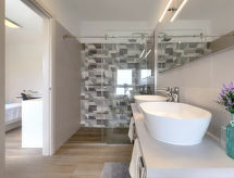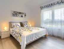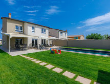 Šišan 4 km från Medulin: Modernt, vackert parhus "Villa Lea", med 2 våningar, byggnadsår 2021. 300 m från centrumet av Šišan, 2 km från centrumet av Ližnjan, 7 km från centrumet av Pula, 3 km från havet, 3 km från stranden. För privat bruk: tomt 700 m2 (inhägnad) med gräsmatta 200 m2, pool kantig (45 m2, 135 cm djup, tillgång säsongsbunden: 03.Apr. - 06.Nov.) med innertrappor och salt-elektrolys. Utedusch, badminton, utegrill, grillstuga, Underhållning av poolen av ägaren/trädgårdsmästaren. I huset: internetanslutning, biljard, centralvärme, luftkonditionering, alarmanläggning, tvättmaskin, torktumlare. Parkering (för 2 bilar) vid huset på tomten. Affär 300 m, stormarknad 4 km, restaurang 50 m, café 300 m, grusstrand 3 km, stenstrand 3 km, strand vid klippor 3 km. Marina 4 km, surfskola 4 km, seglarskola 4 km, tennis 2 km, lekplats 800 m. Tonårsgrupper endast på förfrågan. Notera: flygplats 10 km från huset. Pool med hydromassage.Interior