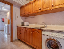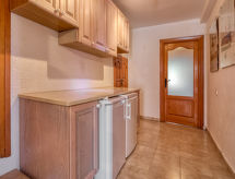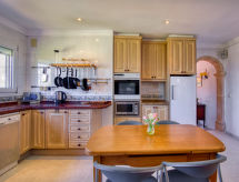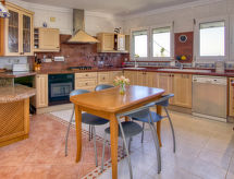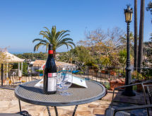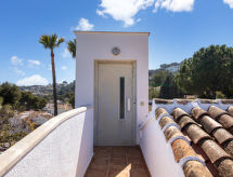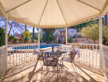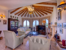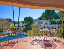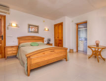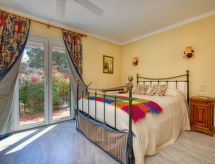 "Villa Los Murales", 4-rums-villa 200 m2. Rymlig och ljus, vackert och mysigt inredd: vardags-/matrum med sat-TV, luftkonditionering och varmluftsuppvärmning. Utgång till trädgårdssittplatsen, till swimmingpoolen. 1 rum med 1 fransk säng (160 cm, längd 200 cm), badkar/toalett, luftkonditionering, fläkt och varmluftsuppvärmning. Utgång till terrassen. 1 rum med 1 fransk säng (140 cm, längd 200 cm), luftkonditionering och varmluftsuppvärmning. Stort kök (5 kokplattor, ugn, diskmaskin, brödrost, vattenkokare, mikrovågsugn, frys, elektrisk kaffemaskin). Badkar/toalett. Nedre våning: 1 rum med 1 fransk säng (140 cm, längd 200 cm), badkar/toalett, luftkonditionering, fläkt och varmluftsuppvärmning. Kokvrå (mikrovågsugn, frys). Övre våning: med matvrå. Trädgårdssittplats. Terrassmöbler, vilstolar (4), loggia, sittgrupp. Mycket vacker panoramautsikt på bergen, dalen och viken. Till förfogande: tvättmaskin, strykjärn, hög barnstol, barnsäng, hårtork. Internet (Trådlös LAN [WLAN] , gratis). Notera: TV bara UK. VT-483356-A- Utrustning