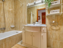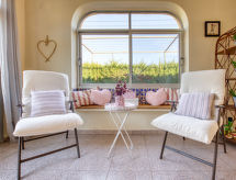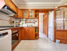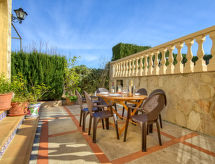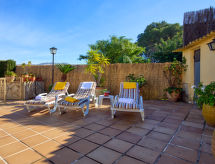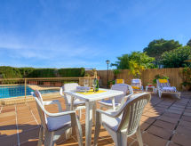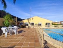 "Villa Magdala", 4-rums-hus 300 m2. Vackert och mysigt inrett: vardags-/matrum med luftkonditionering och varmluftsuppvärmning. Utgång pergola, till swimmingpoolen. 1 rum med 1 fransk säng (160 cm, längd 200 cm), badkar/toalett och fläkt. 1 rum med 1 fransk säng (135 cm, längd 180 cm), luftkonditionering och varmluftsuppvärmning. 1 rum med 2 sängar (90 cm, längd 180 cm), fläkt. Stort kök (ugn, diskmaskin, 3 kokplattor - glaskeramikhäll, brödrost, mikrovågsugn, frys, elektrisk kaffemaskin). Badkar/bidé/toalett. Stor terrass. Terrassmöbler, utegrill, vilstolar. Till förfogande: tvättmaskin, strykjärn, hög barnstol, barnsäng, hårtork. Internet (Trådlös LAN [WLAN] , gratis). Notera: lämpligt för barnfamiljer. TV bara ES. R000000001- Utrustning