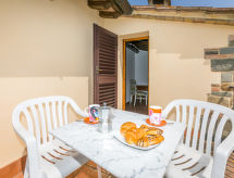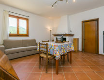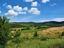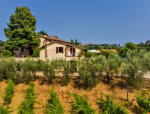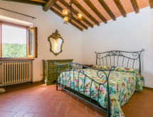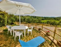"Dependance di Villa Magna", 3-rums-hus 70 m2 med 2 våningar. Delvis renoverat år 2022, praktiskt och mysigt inrett: vardags-/sovrum med 1 bäddsoffa för 2 personer, öppen spis, matbord och sat-TV (flatscreen TV). Kök (ugn, diskmaskin, Gasspis, 4 gasflammor, brödrost, vattenkokare, elektrisk kaffemaskin). Övre våning: 1 dubbelrum. 1 rum med 1 säng (80 cm, längd 190 cm). Utgång till terrassen, till trädgårdssittplatsen. Dusch/bidé/toalett. Gasuppvärmning. Naturstensgolv. Terrass, trädgårdssittplats. Terrassmöbler, utegrill, vilstolar, förråd. Vacker utsikt på landskapet. Till förfogande: tvättmaskin, strykjärn, hög barnstol, barnsäng för barn under 2 år, hårtork. Internet (Trådlös LAN [WLAN] , gratis). Garage (1 Bil) vid huset. Notera: lämpligt för barnfamiljer. Rökfri lägenhet. 1 husdjur/hund tillåtet. Privat entré, privat entré. Flexibel fördelning av sängar: Antalet tillgängliga sovplatser är större än det maximala antalet personer, som dock inte får överskridas. Inga obligatoriska extra avgifter betalas på plats förutom lokal skatt.- Utrustning