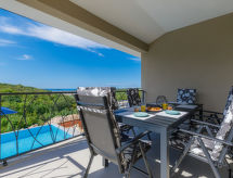 9-rums-hus 214 m2 med 2 våningar. Vackert och smakfullt inrett: vardags-/matrum med sat-TV (flatscreen TV), luftkonditionering. Utgång till terrassen, till swimmingpoolen. 1 rum med 1 fransk säng (180 cm, längd 200 cm), sat-TV (flatscreen TV), luftkonditionering. Vardags-/matrum med köksblock och sat-TV (flatscreen TV). Utgång till terrassen. 1 rum med 1 fransk säng (180 cm, längd 200 cm). Öppet kök (4 kokplattor, ugn, diskmaskin, vattenkokare, frys, elektrisk kaffemaskin). 2 duschar/toaletter. Övre våning: 1 rum med 1 fransk säng (180 cm, längd 200 cm), badkar/toalett och sat-TV (flatscreen TV), luftkonditionering. 1 rum med 2 sängar (90 cm, längd 200 cm), dusch/toalett och sat-TV (flatscreen TV), luftkonditionering. Utgång till terrassen. 1 rum med 1 fransk säng (180 cm, längd 200 cm). 2 rum, till varje rum hör 1 säng (140 cm, längd 200 cm). Badkar/toalett. Terrass 20 m2, terrass 8 m2. Terrassmöbler, vilstolar. Vidsträckt utsikt på havet. Till förfogande: kassaskåp, hårtork. Internet (Trådlös LAN [WLAN] , gratis).- Aktiviteter i närheten
