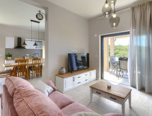 Vackert enfamiljshus "Villa Bella", med 2 våningar. I den lilla byn Srbani 4 km från centrumet av Brtonigla, 9 km från centrumet av Novigrad, lugnt, soligt läge, 9 km från havet, i en återvändsgränd. För privat bruk: tomt 500 m2, pool kantig (8 x 4 m, 140 cm djup, tillgång säsongsbunden: 01.Maj. - 01.Nov.) med innertrappor. Utedusch, trädgårdsmöbler, utegrill. I huset: internetanslutning, tvättmaskin. Parkering (för 2 bilar) vid huset på tomten. Affär 3 km, restaurang 3 km, grusstrand 9 km, strand vid klippor 9 km. Vandringsleder från huset 100 m, cykelled 150 m. Närbelägna sevärdheter: aquapark 3 km. Notera: lämplig för barnfamiljer. Ägaren accepterar inga ungdomsgrupper. Det är inte tillåtet att organisera en fest.Interior