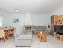 4-rums-hus 100 m2 med 2 våningar, på övervåningen. Komfortabelt inrett: vardags-/matrum med öppen spis (endast för dekoration), sat-TV och internationella TV-kanaler (flatscreen TV). Utgång till trädgårdssittplatsen. 3 rum, till varje rum hör 2 sängar (90 cm, längd 200 cm). Öppet kök (ugn, diskmaskin, 4 kokplattor - glaskeramikhäll, brödrost, vattenkokare, mikrovågsugn, elektrisk kaffemaskin). Badkar/toalett, badkar/dusch/toalett. Oljeuppvärmning. Terrassmöbler, utegrill, vilstolar (5). Vacker utsikt på swimming-poolen och trädgården. Till förfogande: tvättmaskin, strykjärn, hårtork. Internet (Trådlös LAN [WLAN] , gratis). Garage. Notera: max 1 husdjur/hund tillåtet. TV bara ES, DE, FR. HUTG014822- Utrustning