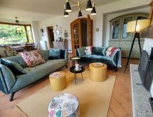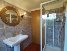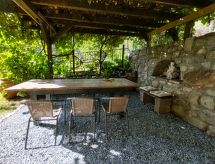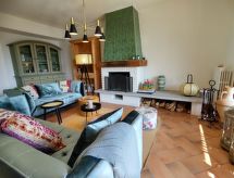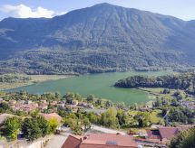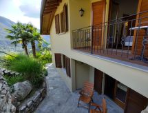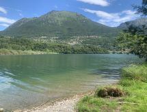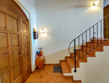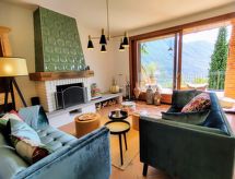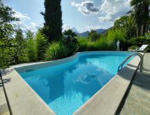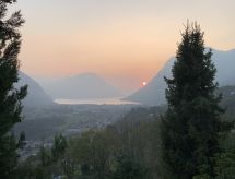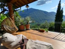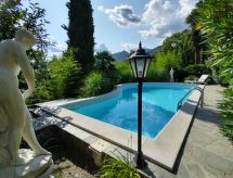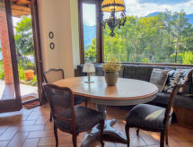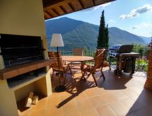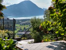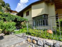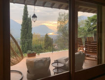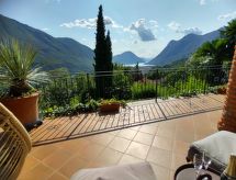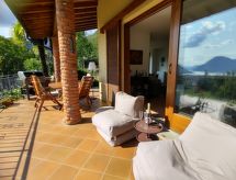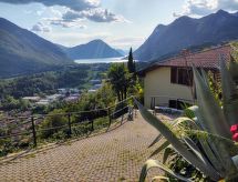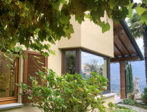 4-rums-hus 175 m2 med 3 våningar. Ljus, komfortabelt och smakfullt inrett: mellanplan med sep. toalett. Öppet stort vardags-/matrum med panoramafönster med öppen spis och radio. Utgång till terrassen, till swimmingpoolen. 1 dubbelrum. Utgång till terrassen. 1 rum med 2 sängar. Utgång till terrassen. Kök (ugn, diskmaskin, 4 Induktionshäll, brödrost, vattenkokare, elektrisk kaffemaskin). Utgång till trädgården, pergola. Dusch/toalett. Övre våning: öppet vardagsrum med sat-TV. 1 dubbelrum. Utgång till balkongen. Dusch/toalett, dubbelt handfat. Gasuppvärmning. Trägolv, naturstensgolv. Liten balkong, 2 små terrasser täckt, stor terrass täckt. Terrassmöbler, balkongmöbler, utegrill (flyttbar). Härlig panoramautsikt på sjön, bergen och dalen. Till förfogande: tvättmaskin, torktumlare, hög barnstol, barnsäng för barn under 2 år. Internet (Trådlös LAN [WLAN] , gratis). Notera: rökfritt hus. 013047–CNI-00017- Utrustning