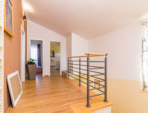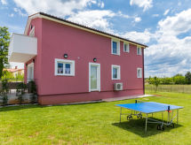 Vackert enfamiljshus "Villa May", med 2 våningar, byggnadsår 2018. I den lilla byn Červari 3 km från centrumet av Tinjan, 14 km från centrumet av Pazin, 16 km från centrumet av Poreč, lugnt, soligt läge, 16 km från havet. För privat bruk: tomt 1'900 m2 (inhägnad), gräsmatta 1'000 m2 träd, pool kantig (9 x 4 m, 37 m2, 140 cm djup, tillgång säsongsbunden: 03.Apr. - 09.Okt.) med innertrappor. Utedusch, bordtennis, volleyboll, terrass (50 m2), trädgårdsmöbler, utegrill, Underhållning av poolen av ägaren/trädgårdsmästaren. I huset: internetanslutning, tvättmaskin. Tillfart ända fram till till huset (50 m naturväg). Parkering (för 4 bilar) på tomten. Affär 3 km, stormarknad 14 km, restaurang 2 km, grusstrand 16 km, betongbelagd strand 16 km. Vandringsleder från huset 200 m. Närbelägna sevärdheter: Adventure park 5 km. Notera: flygplats 52 km från huset.Interior