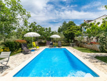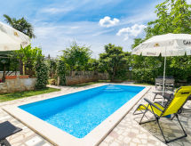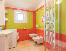 Peroj 10 km från Pula: 3-familjshus "Villa Sandra". I utkanten, 3.5 km från centrumet av Fažana, 800 m från havet, 800 m från stranden, i en återvändsgränd. För gemensamt bruk: tomt 1'500 m2 (inhägnad) med träd, pool kantig (7 x 3 m, 23 m2, 150 cm djup, tillgång säsongsbunden: 02.Maj. - 24.Okt.) med innertrappor. Toalett i poolområdet, utedusch, bordtennis, terrass, trädgårdsmöbler, utegrill. I huset: internetanslutning. Parkering vid huset. Affär, restaurang 500 m, grusstrand, strand vid klippor 800 m. Marina 3 km. Notera: flygplats 12 km från huset.Interior