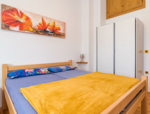 "Villa Sandra (PUL412)", 2-rums-lägenhet 55 m2 med 2 våningar på 1. våningen. Vardags-/matrum med sat-TV. Vardagsrum med 1 bäddsoffa för 2 personer (160 cm, längd 200 cm), sat-TV. Utgång till balkongen. 1 rum med 1 säng och 1 dubbelsäng. Kök (1 kokplatta, ugn, 3 gasflammor, brödrost, vattenkokare, frys, elektrisk kaffemaskin). Dusch/bidé/toalett. Övre våning: (brant trappa) ingång. Utgång till terrassen. Balkong 10 m2, terrass 18 m2. Terrassmöbler, balkongmöbler. Utsikt på havet. Till förfogande: tvättmaskin. Internet (Trådlös LAN [WLAN] , gratis). Notera: rökfritt hus. Max 2 husdjur/hundar tillåtna. Privat entré, privat entré.- Utrustning