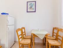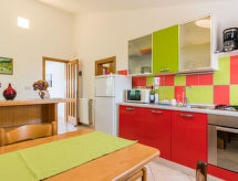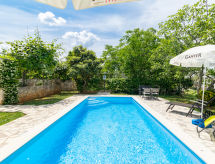 Peroj 10 km från Pula: 3-familjshus "Villa Sandra". I utkanten, 3.5 km från centrumet av Fažana, 800 m från havet, 800 m från stranden, i en återvändsgränd. För gemensamt bruk: tomt 1'500 m2 (inhägnad) med träd, pool kantig (7 x 3 m, 23 m2, 150 cm djup, tillgång säsongsbunden: 02.Maj. - 24.Okt.) med innertrappor. Toalett i poolområdet, utedusch, bordtennis, terrass, trädgårdsmöbler, utegrill. I huset: internetanslutning. Parkering vid huset. Affär, restaurang 500 m, grusstrand, strand vid klippor 800 m. Marina 3 km. Notera: flygplats 12 km från huset.Interior