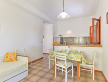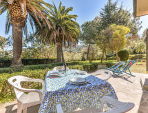 2-rums-lägenhet 55 m2, på bottenvåningen. Praktiskt inredd: vardags-/sovrum med 1 bäddsoffa för 2 personer och sat-TV. Utgång till trädgårdssittplatsen. 1 rum med 1 dubbelsäng. Kokvrå (4 gasflammor, frys) med matbord. Dusch/bidé/toalett. Ingen uppvärmningsmöjlighet. Trädgårdssittplats 20 m2. Terrassmöbler, vilstolar (2). Till förfogande: kassaskåp, myggnät. Internet (Trådlös LAN [WLAN] ). Parkeringsplats (1 Bil) vid huset. Notera: lämpligt för barnfamiljer. 1 husdjur/hund tillåtet. Privat entré, privat entré.- Utrustning