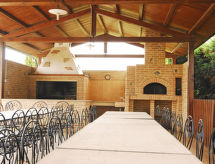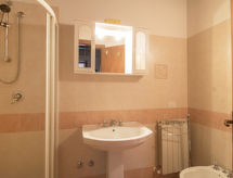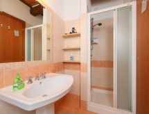 "Fogolar", 4-rums-lägenhet 88 m2. Enkelt och rustikt inredd: vardags-/matrum med 1 bäddsoffa, öppen spis, matbord, köksblock och sat-TV. Utgång till loggian. 2 dubbelrum, till varje rum hör, dusch/bidé/toalett. Utgång till trädgården. 1 rum med 2 sängar. Kök (4 kokplattor, ugn, diskmaskin, frys, elektrisk kaffemaskin). Dusch/bidé/toalett. Gasuppvärmning. Uppvärmning endast tillgängligt från 15.10. till 15.04. Terrass. Till förfogande: myggnät. Internet (Trådlös LAN [WLAN] ). Notera: 1 husdjur/hund tillåtet. Privat entré, privat entré.- Utrustning