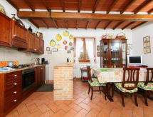 Bondgård "Villastrada", fristående, fält. 3 lägenheter i fastigheten. I orten Cantagallina, 15 km från centrumet av Castiglion Del Lago, på en kulle, i det gröna. För gemensamt bruk: trädgård 1'000 m2 (inhägnad), pool (13 x 5 m, 140 - 200 cm djup, tillgång säsongsbunden: 01.Jun. - 30.Sep.). Utegrill, barnlekplats. I huset: gym, tvättmaskin (extra), uppvärmning endast tillgängligt från 15.10. till 15.04.. Tillfart (1.5 km naturväg). Parkering (täckt). Affär 4 km, livsmedelsaffär 4 km, stormarknad 4 km, restaurang 4 km, busshållplats 2 km, bad med varma källor "Chianciano" 21 km, badsjö "Trasimeno" 15 km. Ridstall 10 km. Närbelägna sevärdheter: Chiusi 8 km, Cetona 16 km, Sarteano 18 km, Città della Pieve 20 km, Montepulciano 30 km, Pienza 43 km. Notera: fordon rekommenderas.Interior