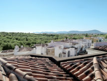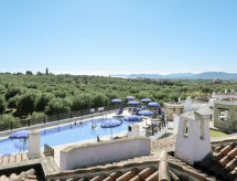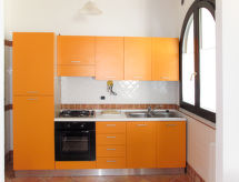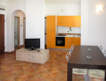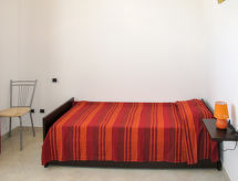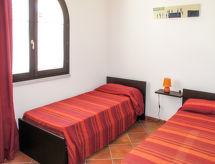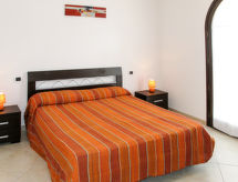 "Vista Blu", 3-rums-radhus 80 m2. Modernt inrett: vardags-/matrum med matbord och TV. Utgång till terrassen. 1 rum med 1 fransk säng (160 cm). 1 rum med 2 sängar (80 cm). Öppet kök (ugn, 4 gasflammor, brödrost, frys). Badkar/toalett, dusch/toalett. Eluppvärmning, luftkonditionering. Terrass, gräsmatta. Terrassmöbler, utegrill, förråd. Till förfogande: tvättmaskin, strykjärn, hög barnstol, barnsäng (extra). Max 1 husdjur/hund tillåtet.- Kännetecken för boendet